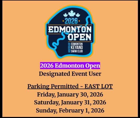 Please show the pass below to parking guards at the Kinsmen Sport Centre for access to EVENT PARKING during the meet. The pass may be printed or shown directly from your phone.