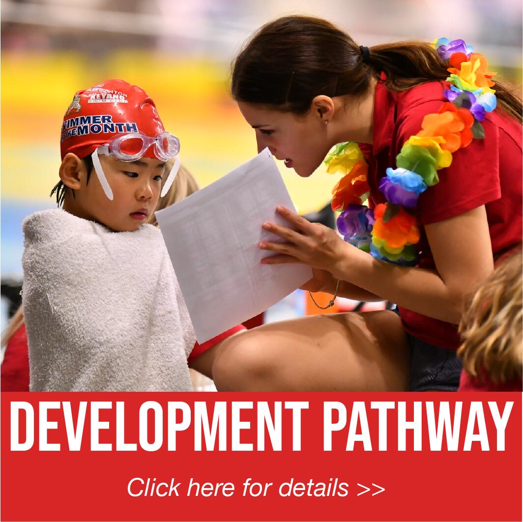 The cornerstone of Keyano's program is it's unique development pathway. Each of our training groups on the pathway provides unique challenges and opportunties to guide each swimmer to achieve their swimming goals